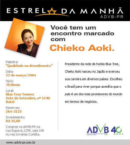 Tendo como palestrante Chieko Aoki,Blue Tree Hoteis, que trouxe o tema Qualidade no Atendimento