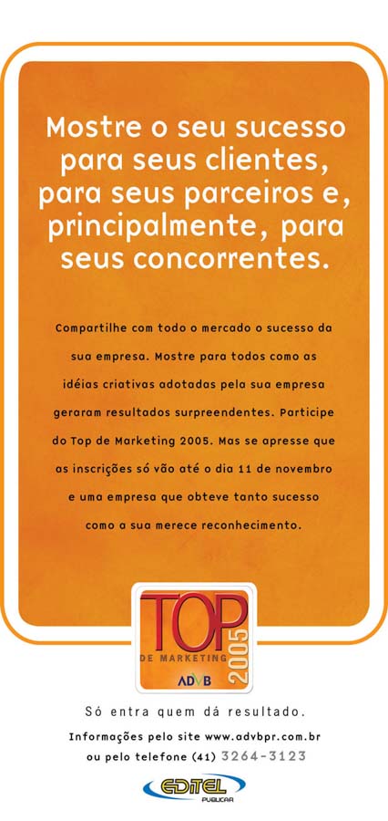 O slogan da campanha foi “Top de Marketing 2005. Só entra quem dá resultado”