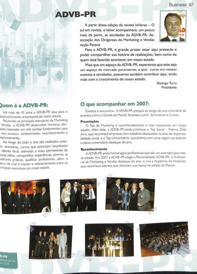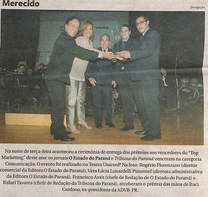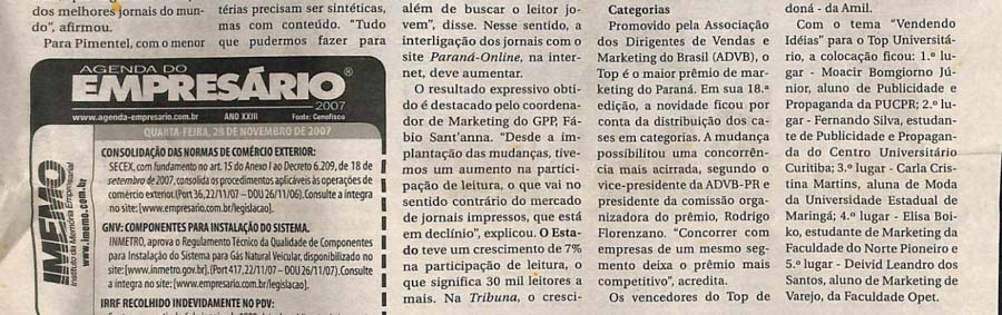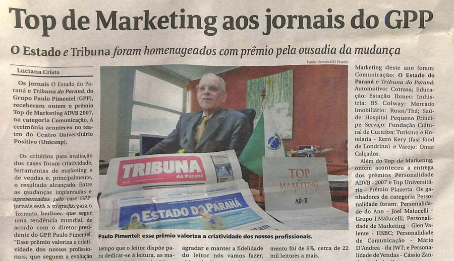 (27 de novembro de 2007) e, no mesmo evento, a entrega do IX Top Universitário do Paraná – Prêmio Piazzetta e do troféu de Personalidades do Ano (agraciado o empresário Joel Malucelli)
