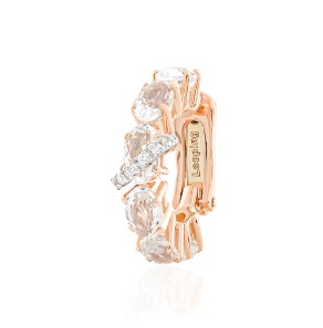 Piercing Ouro Rosé Quartzos Translúcidos e Diamantes