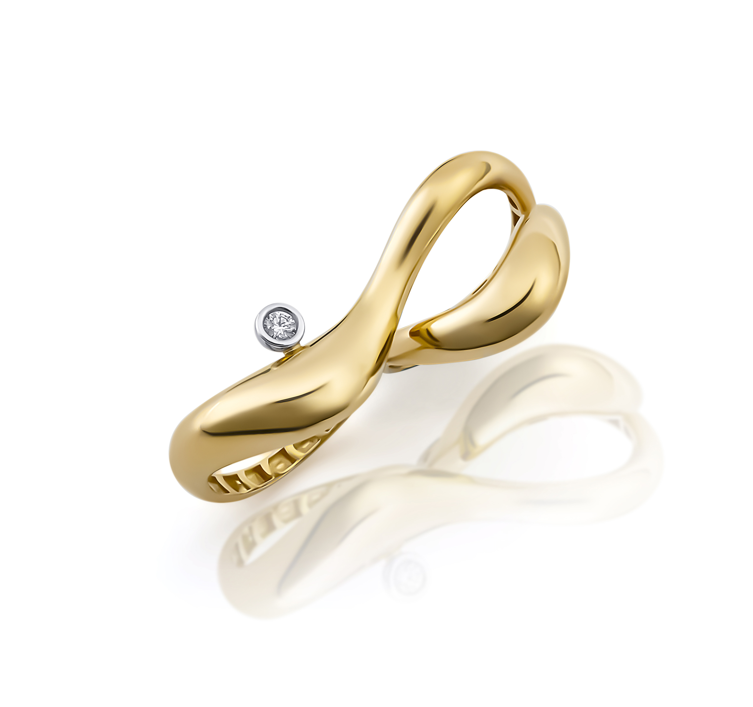Especificações: Anel dois dedos ouro amarelo e diamante 0,09 ct