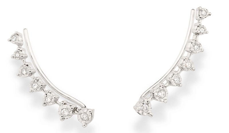 Especificações: Brinco earcuff ouro branco diamantes cravação artística 0,13 ct