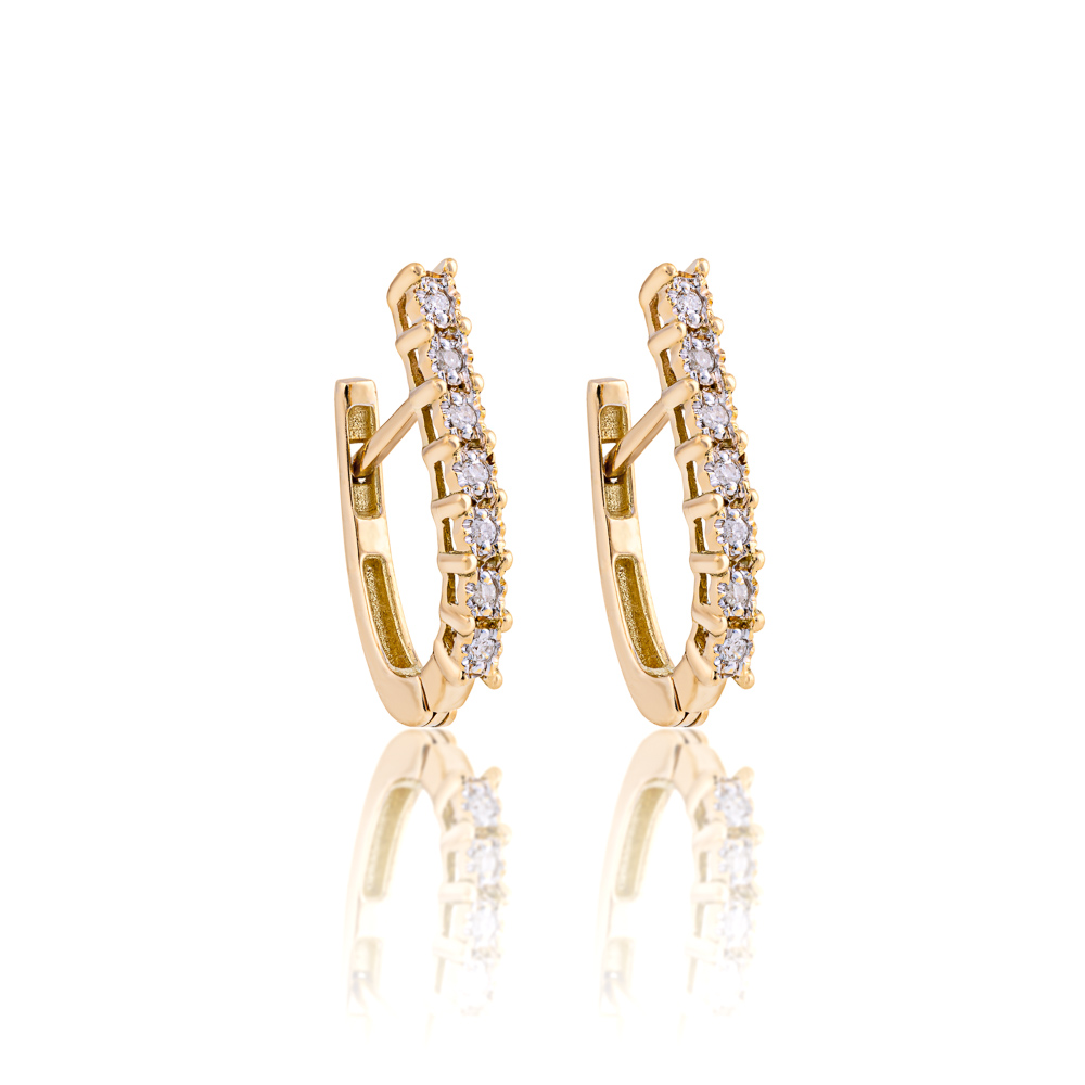Especificações: Brinco ouro amarelo argola oval com diamantes 0,07 ct.