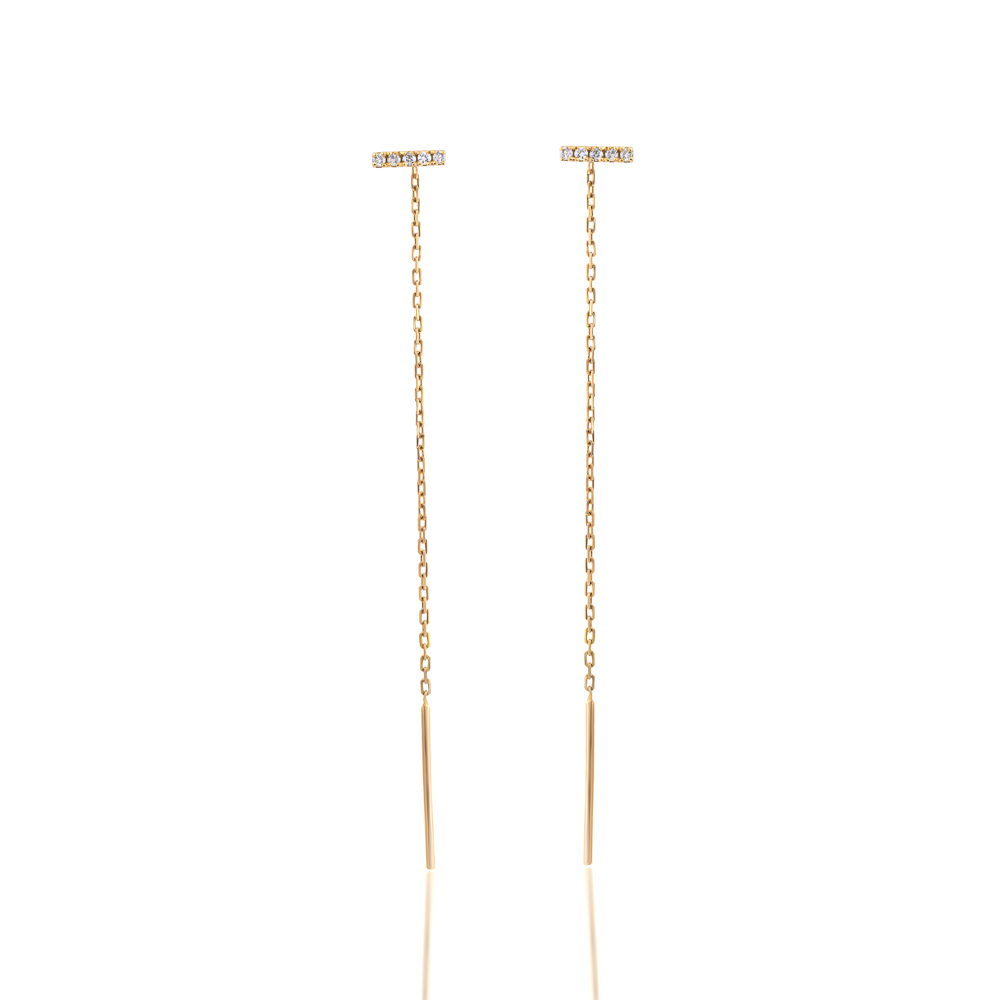 Especificações: Brinco Ouro Amarelo Corrente com Diamantes 0,11 ct