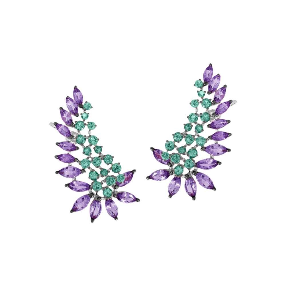 Especificações: Brinco ouro branco tanzanitas 5,56 ct e esmeraldas 1,75 ct