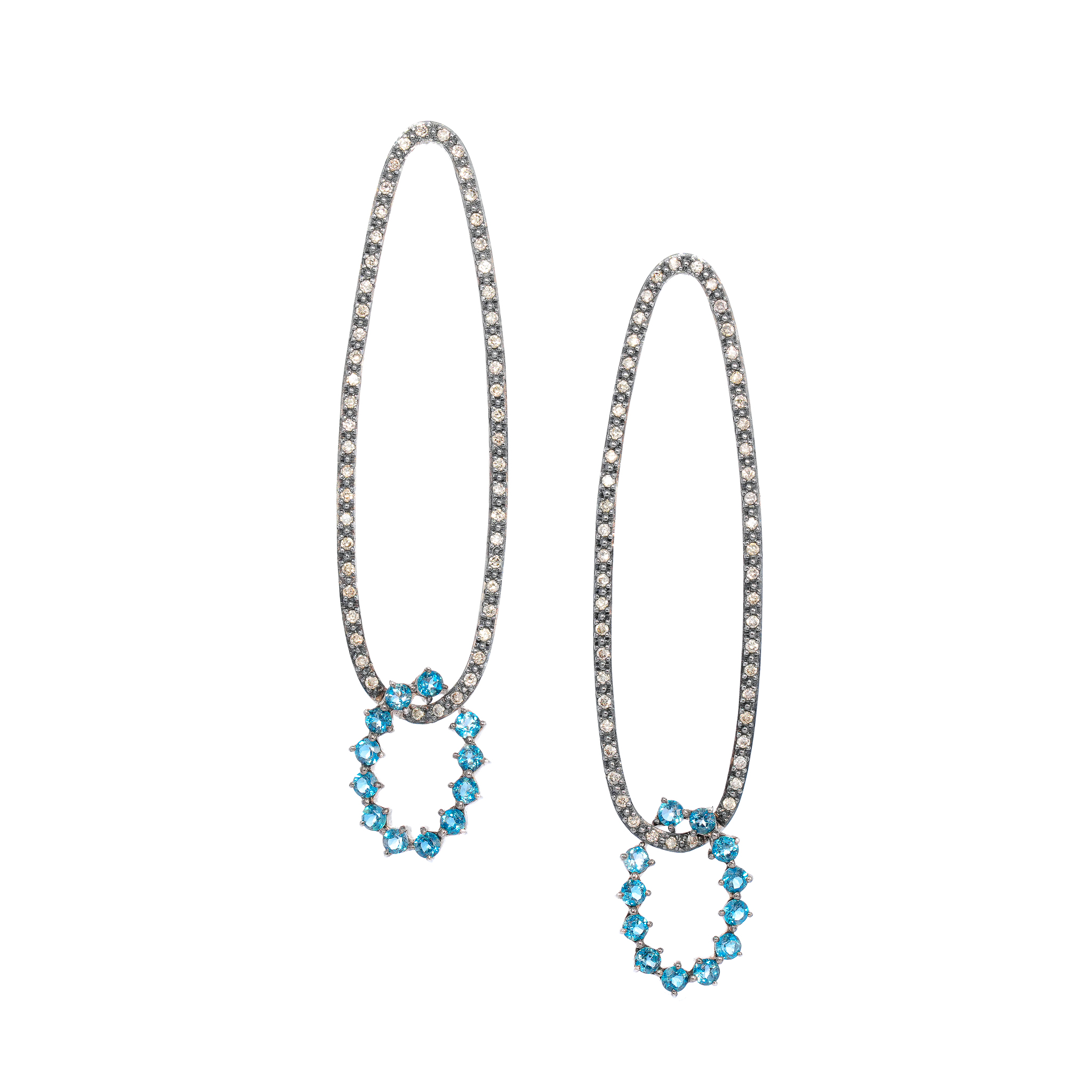 Brinco ouro branco, topázios london e diamantes brown 0,85ct