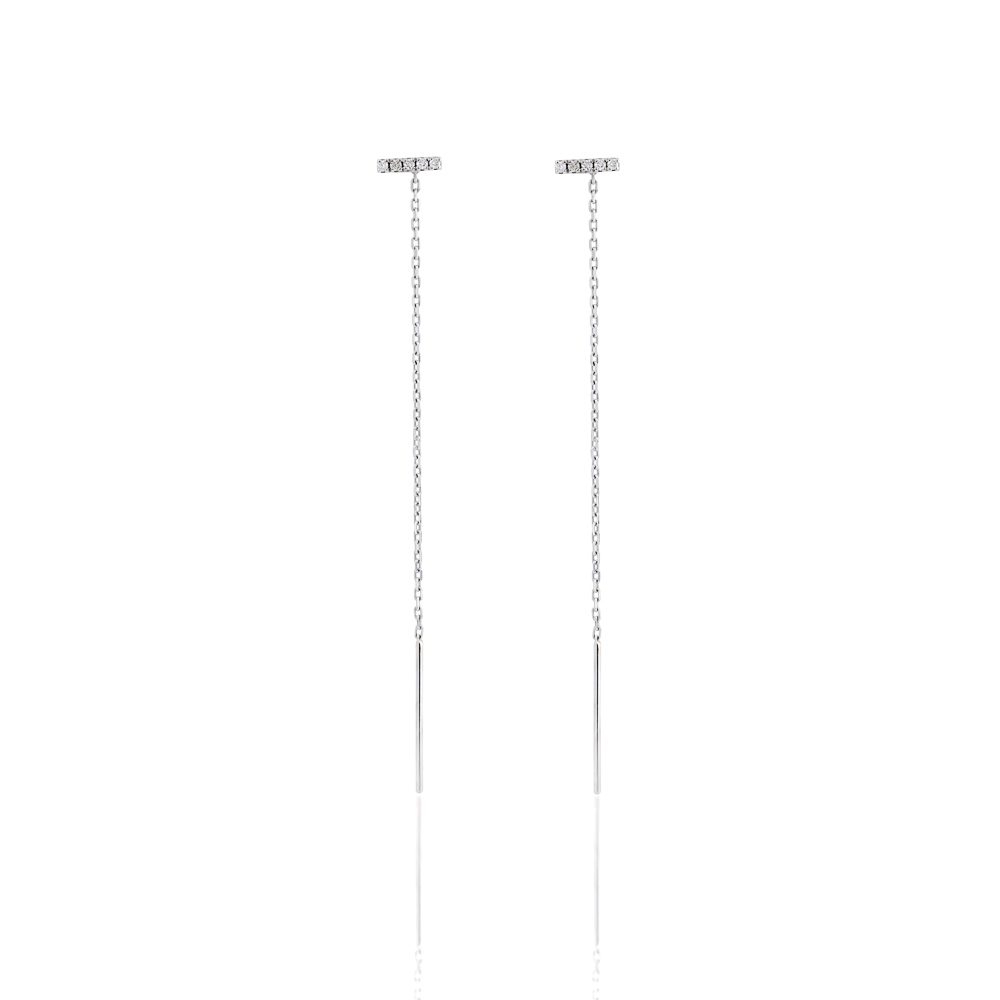 Especificações: Brinco ouro branco corrente com diamantes 0,11 ct
