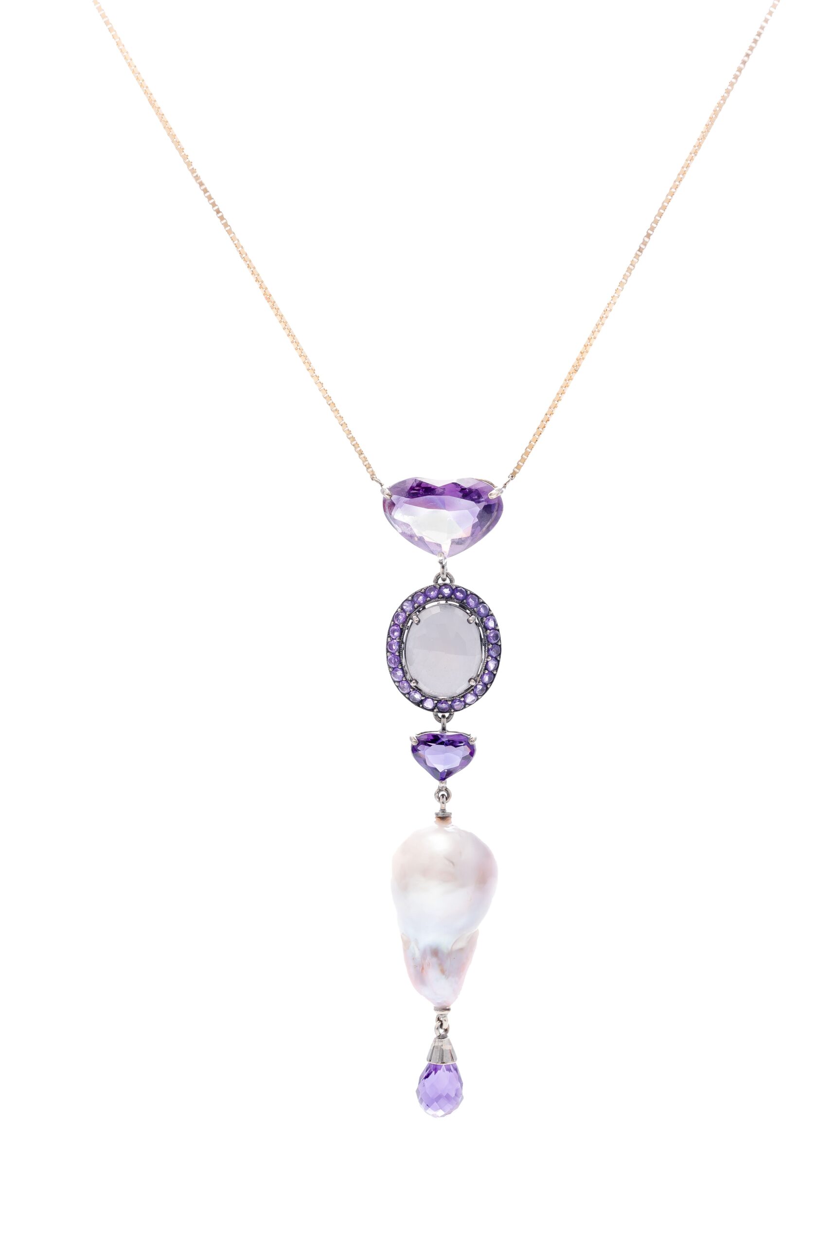 Título: Colar ouro amarelo com pingente ametistas e pérola barroca