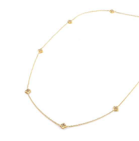 Especificações: Colar ouro amarelo elos portugueses flores com diamantes 0,36 ct