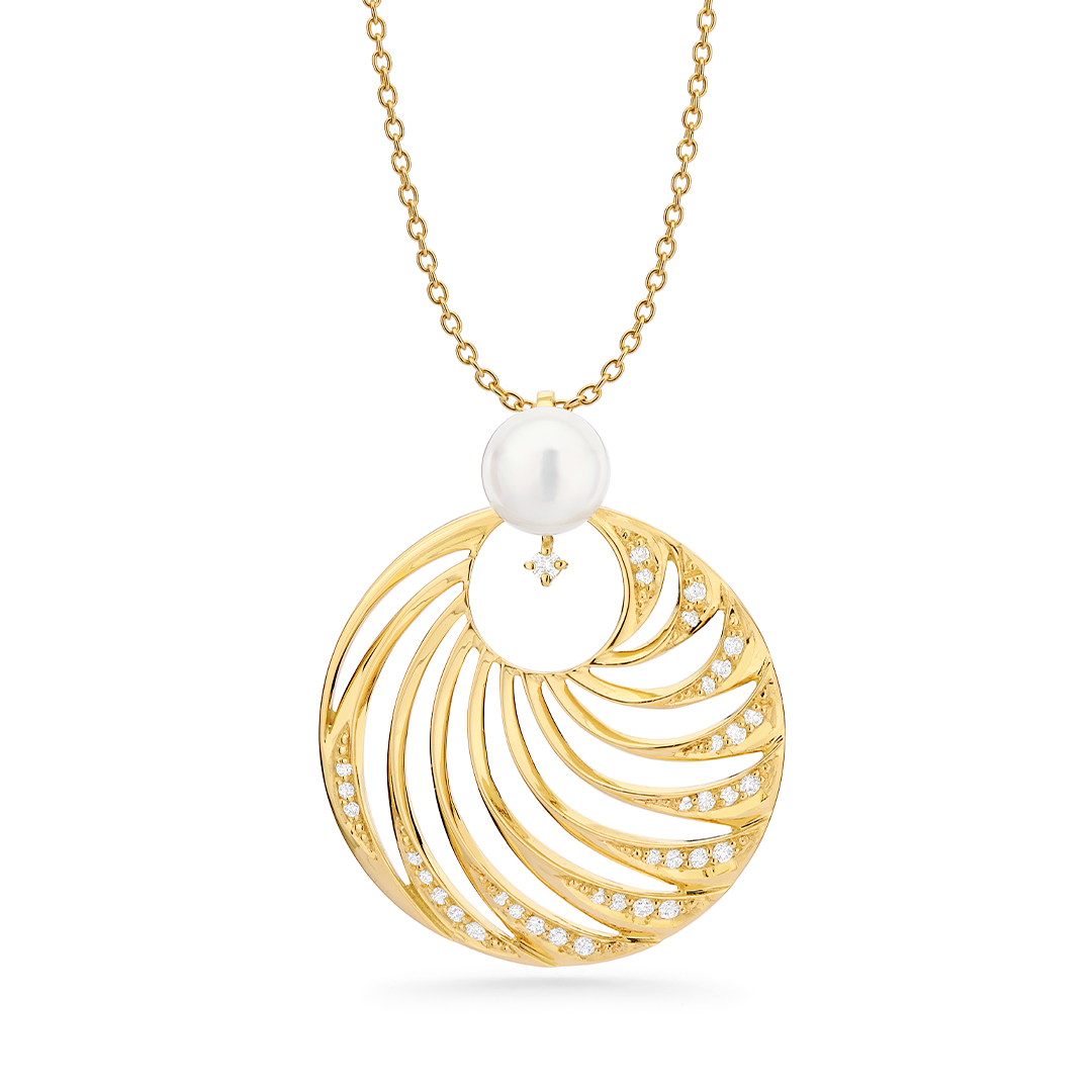 Especificações: Pingente ouro amarelo, pérola Akoya e diamantes