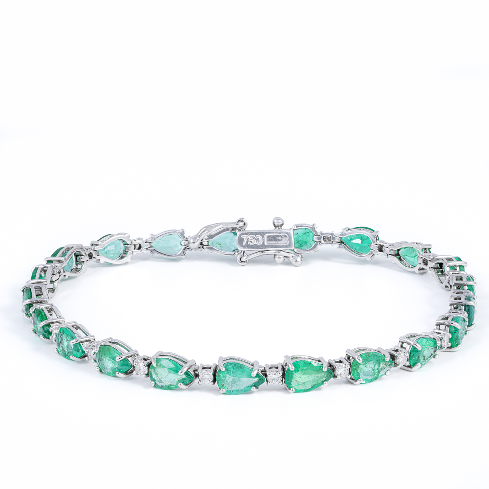Especificações: Pulseira ouro branco gotas esmeraldas 4,94 ct e diamantes 0,42 ct