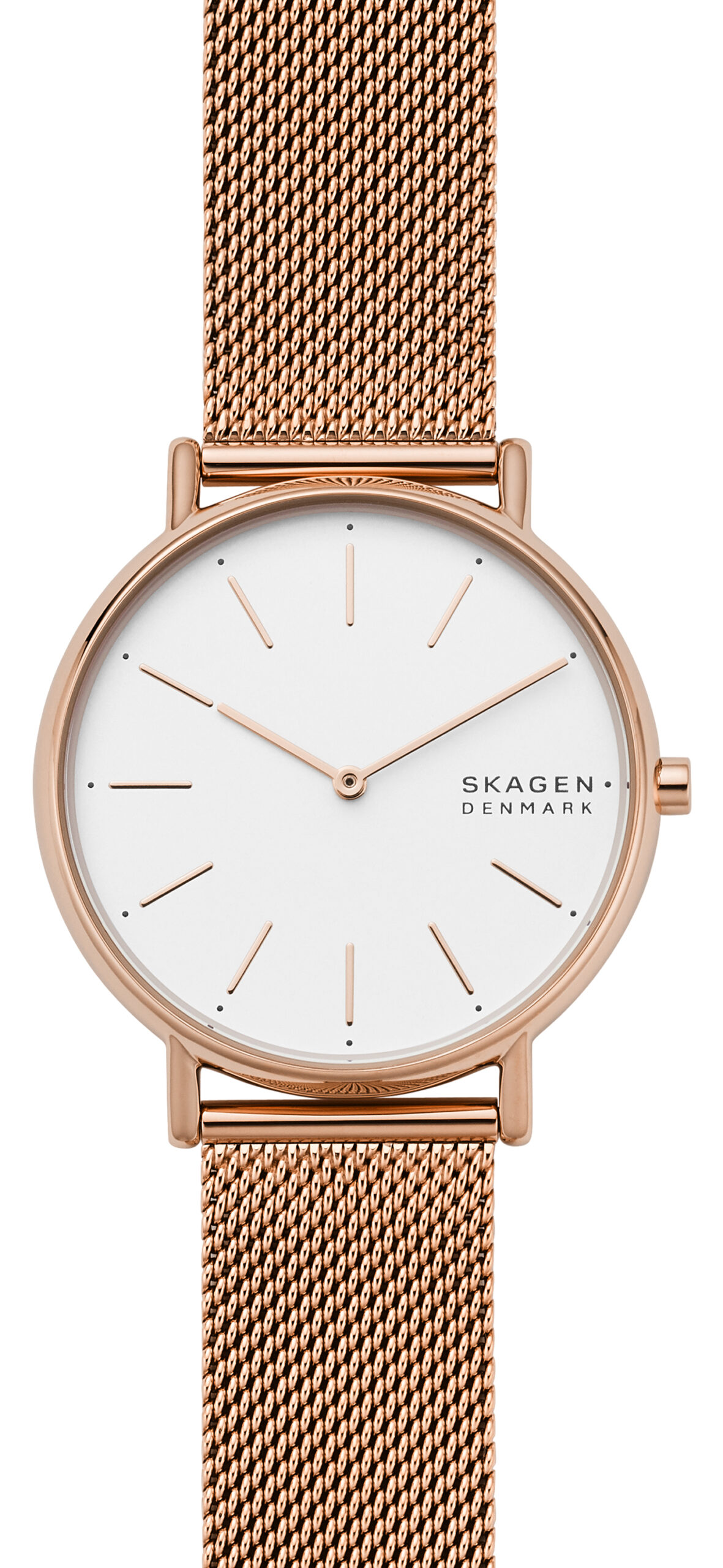 Especificações: Relógio rosê analógico, caixa e pulseira rosê, mostrador branco.